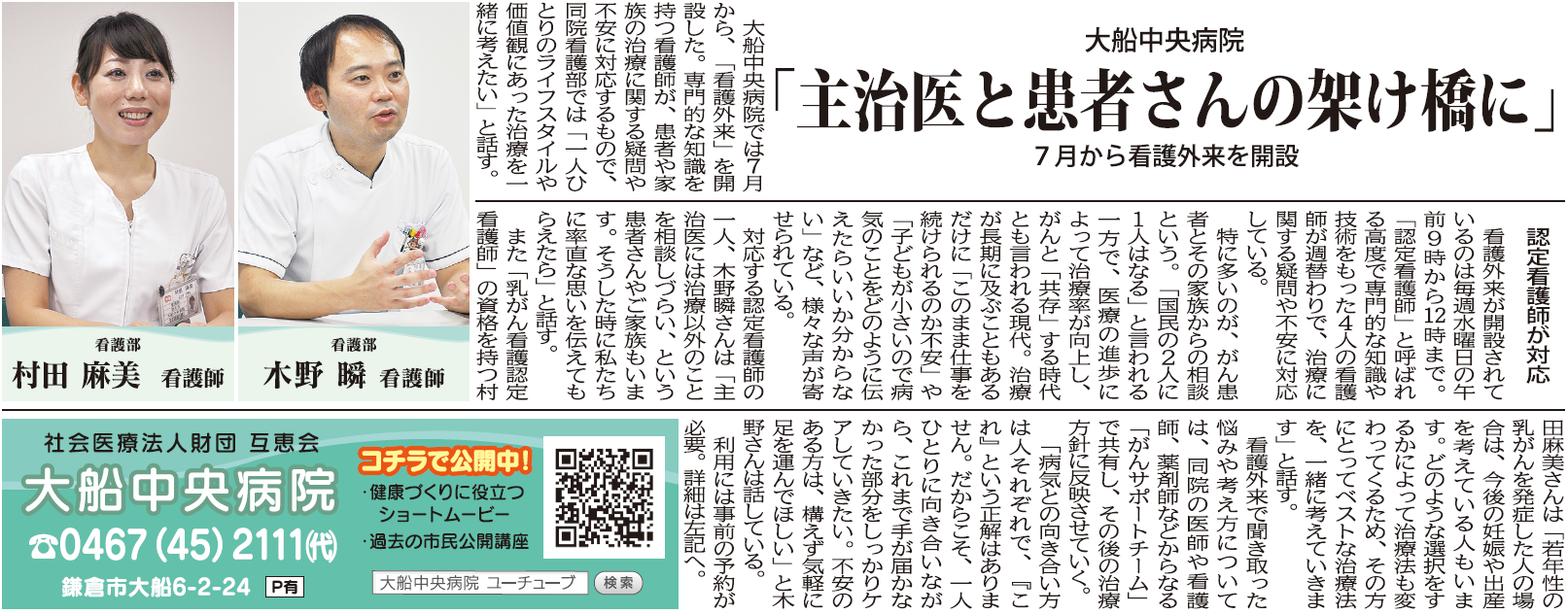 がん看護相談外来「主治医と患者さんの架け橋に」