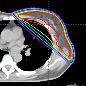 左乳がん術後照射乳がん術後照射,50Gy/25回 患者さんの感想:納得して放射線治療を受診することができました。事前の説明は大変参考になり不安が解消されました。最初CTを撮った時が一番不安でしたが、技師の方達の緊張をほぐしてくれながらの対応でほっとした・・・(つづきを読む) |